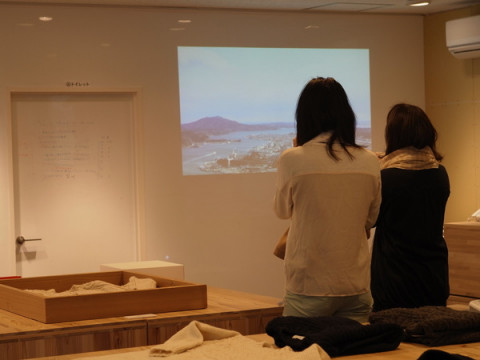 セーターを観終わったお客さんたちは、しょうがシロップを飲みながらのんびりスライドショーを見たりされています。