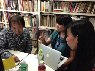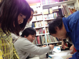 だいぶ進んだ!(きっと) こんばんは。 ここ最近は とともに、祖父江慎さんのコズフィッシュにお伺いしています。 5月16日(金)から渋谷パルコミュージアムではじまる 「かないくん展」の準備中です。 先日、 みんなで、日々、ちからを合わせて幕が開くその日まで、ただいま製作中であります。 展覧会場の隅から隅まで考えたり、つくったり、形にしたり、やめたり。 「あれ、そうだったっけ?」 「ちがうよ、こうだよ。」 「どちらがいいかな〜?」 「いいね。こっちにしよう。」 などなど。 今思えば、きっと、いろんなことをいろんな人たちとアイデア出しながら話し合ってきたはずなのですがミーティングの回数はもうあまり覚えていません。 写真に出ている人たちだけではなくもっとたくさんの人々が関わってあと、10日で本番を迎えます。 ほんとうに、仕上がるかどうかまだドキドキですが、がんばりまーす。 以上、コズフィッシュよりお送りしました。 2014/05/06 21:32 |