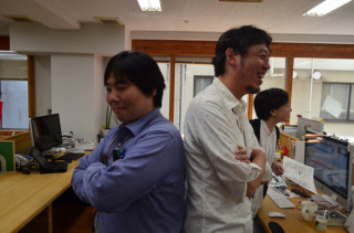 微妙なおそろい。 ライトな打ち合わせを立ちながらしていたら、とあることを発見。 宇宙部の とりあえず、まあ、背中合わせになってもらおうか。 いや、なったところでわからないか。 白いシャツと青いシャツのおっさんが謎に背中合わせの写真だ。 近づくか。 ほら、近づくとさ。 あ、カメラの都合でまだわからないか。 青いシャツの写りが鮮明ではない。 じゃ、青いほうに近づくと、ほれ、水玉じゃろう? つまり、シャツで水玉だ。 「シャツで水玉」 これが、そろっているポイントだ。 長々と説明を失礼。 2014/05/09 12:26 |