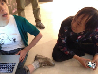 と祖父江さんが路上で飲んでいるようなポーズで打ち合わせをはじめたりしてだんだんと「かないくん展設営ハイ」になってまいりました。