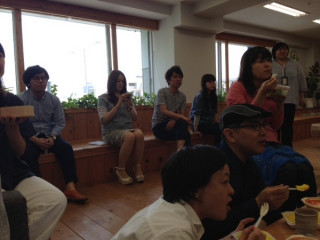 会社の「縁側」と呼ばれる場所に乗組員が集まりました。