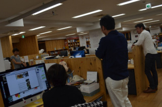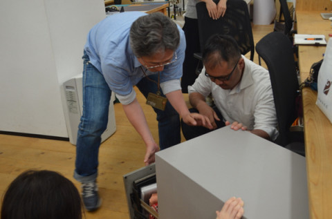 ジェントルマンと野次馬と。 それは昨晩のことじゃった。 ガッチャン、ガッチャンと明らかな破壊音が聞こえてきたので、なにごとかとみると、先日「ほぼ日」にコーディングのお仕事でお手伝いに来てくれている小沼さんのキャビネットがどうやらおかしいらしい。 当然ながら、弊社のジェントルマンたちがキャビネットをどうにかしてやろうと、取り組むのであります。 今回の場合は、ジェントルマンナンバー1: ジェントルマンナンバー2: のこりのジェントルマンはやじうまに早変わりいたします。 ひやかしたり、もりあがったりもします。 いや、それだけなんですけどね‥‥。 2014/05/22 17:42 |