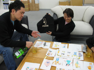 再来襲! ‥‥といっても、ちょっと前のこと。 「日本人の思い」刊行記念コンテンツのために、ハード系イラストレーター 小池アミイゴさんが描いたイラストを持ってきてくださいました。 いい! どの日本人も! わははははは! アミイゴさんはわたしたちの反応に満足げにうなずき、勝利の美酒(富久長)に酔いしれていました。 ところでただいま「九州人の思い」がたいへん盛り上がっているのですが、アミイゴさんは関東出身ながら、九州が大好きで、福岡のカフェでよくイベントをされているんですよ。 ( 「薬院レコード」) お近くの方は行ってみてくださいね〜。 (アミイゴさん、いつも小芝居を ありがとうございます!) 2008/02/28 20:00 |