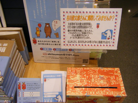 その1 今朝、豊洲ららぽーとの紀伊国屋書店さんへいってきました。 こちらの書店さん、3月いっぱいまでただいま『谷川俊太郎質問箱』フェアを開催中でございます。 しろくまくんもいるので、お近くにこられることがありましたらぜひおたちよりくださいませ! しろくまくんのハラマキもまだあります! 試着もできるそうなので、この機会にぜひおためしくださいね。 そしてそして、ほぼ日上での受付は終了したのですが、こちらの書店さんから谷川俊太郎さんにしつもんをかいたお手紙をだすことができます。 まだきいていないことがある、という方、ぜひぜひどうぞ。 さて、わたくしと 2008/02/29 12:26 |