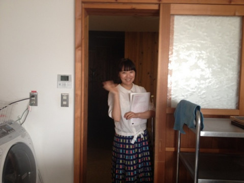 会議室が空いていなかったので、キッチンにてミーティング中のわれわれ。