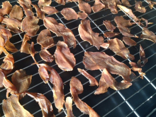 しょうがチップづくり 先日みんなで飲んだときの 「手かげんしないしょうがシロップGOLD」のしょうがスライスが余っていたので、 「しょうがチップ」を作ってみました。 (1) 瓶のなかのしょうがスライスをシロップをきって網にならべ、ひと晩、乾燥させる。 (2) かるくかわいておいしそうになったチップに、グラニュー糖をまぶして完成。 (かわいたものを、そのまま食べても けっこうおいしい) 一枚ずつ網にならべていくのが意外とめんどうで、 「うわ、チップづくりも 手かげんできない‥‥」 と思いましたが、できあがったしょうがチップは辛くて、あとをひく味で、すごくおいしかったです。 ちょっと時間はかかりますが、よければぜひ。 ただ、ついつい、やめられなくて、あっという間に食べてしまったので、こんどはもうちょっと、多めの量を作りたいと思います。 2014/06/03 18:05 |