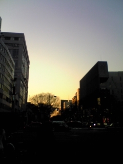 昼間あんなにあたたかかった街も夕焼けとともにちょっと寒くなってきましてコートを持たず会社を出たわたくし変な服を買わずして無念の帰社をいたします。