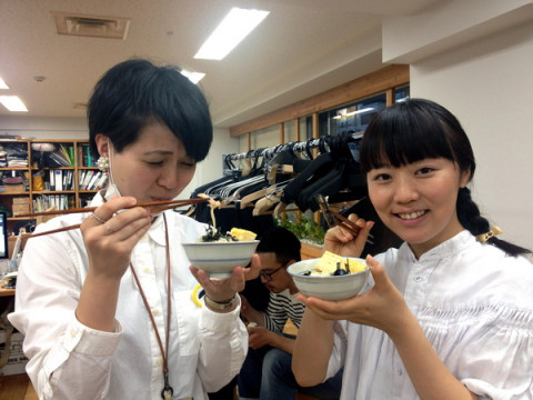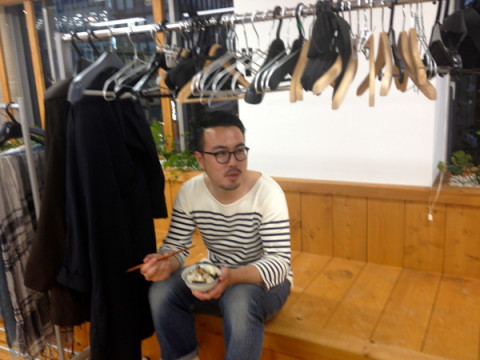 ハンガーの下で ときいたら、この顔。 「にっこり」も「くぅー」も、どちらもおいしい顔ですねー。 てか、 「あ、あ、座ってみたら、 けっこうしっくりきちゃって。 あ、お二人もどうですか?」 「あ、ほんとだー。 けっこうしっくりくる」 といって、食べ始める3人。 いやいや、絵的におかしいですよ。 東京のオフィスは、こんな感じで16周年の夜を迎えました。 気仙沼のバスツアーのほうは、今から食事を食べるところ。 まだまだ盛り上がっているようです! 2014/06/06 19:21 |
