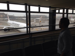 チャイナへ 手帳チームむねひろです。 これから 早いもので2014も半分を過ぎて、ほぼ日手帳2015の発売まで3ヶ月を切りました。 ただいま、われわれほぼ日手帳チームは、カバーの製作や販売に向けた準備など佳境をむかえるなかで、これから入れ替わり立ち替わり生産の打ち合わせなどで、国内外の協力工場さんへ出向きます。 出国手続きを終え、窓の外の飛行機を見つめるべっかむ3。 2015もすてきなラインナップをそろえてますので、どうぞお楽しみに。 それにしても指紋認証の自動出国ゲートって、パスポートにハンコがもらえないのが、なんかさみしい。 2014/06/11 09:16 |