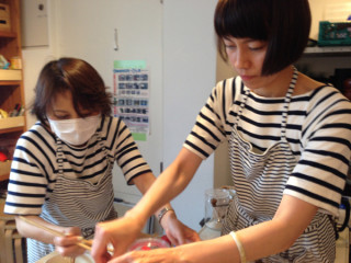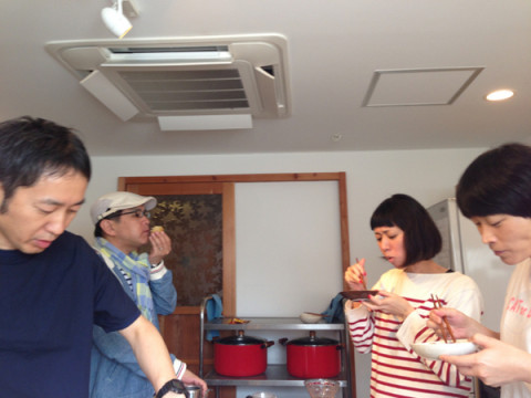 つくってみる! 先日、とあるコンテンツのために、とある料理のレシピをいただいたのです。 レシピときたら、会社のキッチンで、つくってみる! なのでございます。 わたくし、おやつはつくれるのですが、料理はあまり得意ではないので、料理番長・ というか、主に作ってもらいました! ところで‥‥そのシャツおそろいか! エプロンするとしましまおんしましまで目がちかちかするわ! できあがったそれは、ほんとうにほんとうにほんとうにおいしくできました。 わー!!! 2014/06/12 16:13 |