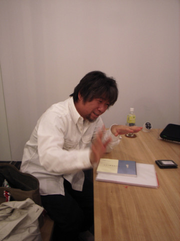 手帳カバー。 さきほどご紹介した、ハラダさん。 手帳チームと一緒に 「ほぼ日手帳2009」のカバーの会議中。 今日はいろいろサンプルをもってきてくださったようでした。 通りすがりの人々もじゃんじゃん会議室にあつまってくるのです。 そして、この男はもちろん小芝居とともに現れたのでございます。 「ハラダさん! ご無沙汰してます〜。 あああ〜、白髪ふえちゃって。 手帳チームに こき使われてるからですね。 おつかれさまです〜。」 ‥‥。 ハラダさん困ってますって。 2008/03/04 15:47 |