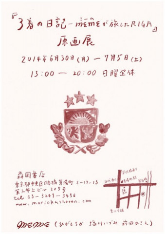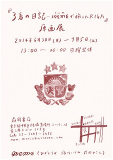 3着の日記展 ハラマキなどでお世話になっている 塩川いづみさん、 扇子でご一緒した、ひがしちかさん、イラストレーターの前田ひさえさん。 3人による、ユニット「meme(ミーム)」。 3人の女性が、去年ラトビアのリガで真っ白いワンピースを着て旅をしました。 そこで、出会った人たちに、ワンピースに絵や文字を描いてもらって、できあがった、新しいワンピース。 その過程の記録や、3人の日記などその3人がそれぞれの個性で、表現されてたものが1冊の本になり、現在原画展が開催中です。 そこでは、本を先行発売していて、これから、色々なところに置かれるそうです。 この本がまた、かわいい! ぜひお手にとってみてください! ==========6/30 ? 7/5 「3着の日記ーmemeが旅したRIGA」 原画展@森岡書店〒103-0025 東京都中央区日本橋茅場町2-17-13 第2井上ビル305号Tel: 03-3249-3456 地下鉄東西線、日比谷線茅場町駅下車 3番出口永代通りを霊岸橋に向かい橋の手前を右へ 古い戦前のビル3階です 2014/07/01 17:34 |