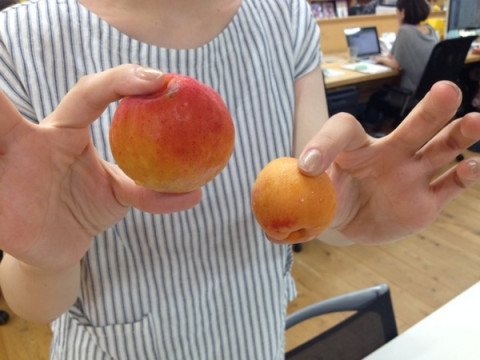 大きいほうが「ハーコット」、小さいほうが「平和」という品種のもの。