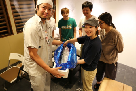 気仙沼だって 東京で、みんなが、 さくらんぼとか、 桃を、楽しそうに食べているのを見ていて、いつも、心からうらやましかったのです。 でもそんなことをわざわざ言うのも、いやしいんじゃないかと一人もんもんとしながら、 「ああ、東京はいいなぁ」とぼやきかけたその時、私の目の前にさくらんぼが! これは夢じゃないでしょうか。 なんと、 気仙沼ニッティングの永川君のお母さまからの差し入れでした! ありがとうございます! 全力で喜んでいたら、同じくニッティングの さくらんぼの他にも、今日は、藤田製函店の一平さんからカツオまるまる一本の差し入れがありました。 いいでしょう! このあと、悪戦苦闘しながらもさばいて、気仙沼のみんなで食べました。 2014/07/04 21:49 |
