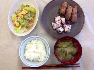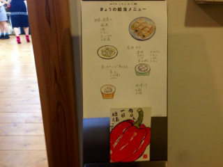 給食の日です! 週に一度の給食の日、本日のメニューをご紹介いたしましょう。 ・野菜の肉巻き ・長いものしば漬けあえ ・春雨サラダ ・ごはん ・大根とわかめの味噌汁 いつも席順とか決まってないのですが今日は、まわりに座っていた たちと、ムーミンやミッキーやピノキオやチッチとサリーや樫の木モックのことを話しながらたいへんおいしくいただきました。 そうそう、給食つくってくださっている飯島奈美さんのおかあさん幸子さんは、メニュー表と絵手紙を、いつも、描いてきてくれるんですよ。 みんな、密かに楽しみにしてます。 「今日も、一日頑張って」 はい、おいしくいただきましたので午後の仕事も、がんばれます! 2014/07/08 13:21 |