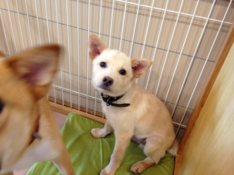 ミグノンで打ち合わせ。 ミグノンで打ち合わせがありました。 ご存知のとおりいぬとねこがいます。 新人のマダマダちゃんは、まだ仔犬。 とても幼いです。 店内のドッグウォークで、行ったり来たり、たのしそうです。 こねこも、またどんどん増えています。 哺乳のお手伝いをしました。 白い犬さんもいます。 耳が立ってて、アイパッチをしているみたいな、ジャック・ラッセルテリア、かな? あれ? ブイちゃん?? そうです。 あんまり「ゆうこうてき」ではないブイヨンですが、お泊りじょうずにできたのかな? お父さんのお迎えまで、もう少し、待っててねー。 また、昨日からミグノンプラン主催イベント 「いぬねこなかまフェス」のチケット先行販売も始まりました。 ぜひぜひ、ご覧くださいー。 くわしくはコチラです。 2014/07/08 20:14 |
