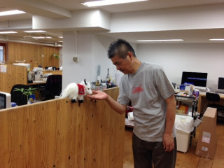出かける直前に、あわてながらごはんをかっこむスガノ。