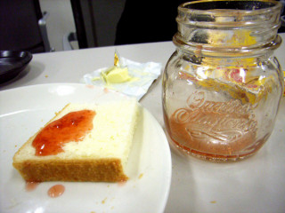 夜のおやつとして、いちごジャムは社内のみんなでなかよくきれ〜いに食べられましたとさ。