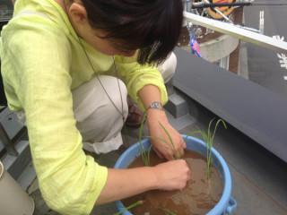 バケツで稲。 事務所のち各のビルの屋上で稲を栽培している話が先日アップされましたが、その稲は、吉祥寺でも育てられることになりました。 場所は、 「カッパとウサギのコーヒーさがし」でもお世話になった、 『hibi』さん。 ロケでつかわせてもらった屋上もあるのだけれども、あまりにも日照りが激しすぎるので、お店の脇にあるバルコニーで育ててもらえることになりました。 諸事情あって、白米ではなく古代米。 さて、どんな風に育つかなー。 そうそう、hibiさんのところには、一風変わったお花がたくさん仕入れられています。 あんまりみたことがなかったり、おかしなルックスだったりすることが多いのですが、花束やブーケにしてもらったときにすんごいステキになる、というなんかほんとに不思議なお店です。 花束やブーケの相談のほかに、多肉植物の寄せ植えの相談にのってくれたり、フラワーアレンジメントの教室も開催しているそうですよー。 吉祥寺にお出かけの際は稲をみがてら、ぜひお立ち寄りをー。 2014/07/25 14:29 |