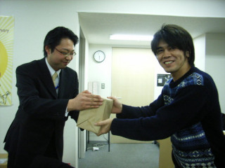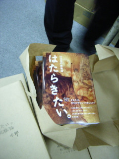 ついにやってきた! 03/07 19:01のモギさんの投稿、3枚目の写真をよ〜くご覧ください。 実は先ほどこちらのページでおなじみの、凸版印刷の藤井さんがいらっしゃったのです! 今日、届けてくださった紙包みの中身は・・・、こちら、できたてホヤホヤの 「はたらきたい。」です!! こりゃ、打ち合わせ中であれ片時も手離さないわけですね。 藤井さんは勝手知ったる取引先と、手際よく納品を終え、ささっと帰っていかれました。 藤井さん、どうもありがとうございます〜! わたしもこれから読むの、とっても楽しみです!! 2008/03/07 19:42 |