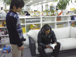 社長に報告がございます。 「社長、本ができました。」 「お。できたね。いいね〜。」 「今日のおっくんは この本、ずっと肌身離さずですね」 (しみじみとうれしそう) 「うんうん、気持ち、分かるよ。 そうだよな。」 というわけで社長へ報告をいたしました きょうは、記念日ですね。 刷りたての「はたらきたい。」ですがこれから、発送をしてくださるアドレス通商さんのところでたいせつに包まれまして、ご購入くださったみなさんのもとへ17日から順次発送いたします。 あとすこし、待っててくださいね。 2008/03/07 22:41 |