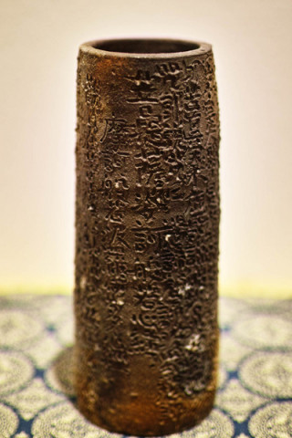 般若心経が! TOBICHIの 「福森雅武 野草と花とうつわ」には、いろいろな作品がならんでいます。 無粋な話ですが、価格もまちまちです。 大きさや手間(土や、ひき方、焼き方など)でももちろんことなりますが、 「雑器」と呼ばれる日常のうつわと、花をいけるのに使ったり、お酒をいただくのに使うものは、同じ土、同じ窯、同じ作者であっても、ずいぶんと値付がことなります。 ぼく(武井)も初めてこの世界にふれたとき、ずいぶん驚きました。 おなじお茶用でも、ふだん使いの「湯のみ」ととくべつなときに使う「抹茶碗」では、まったくちがう値札がついていたりするのですね。 (最初の写真が、抹茶碗です。) 美術と日常をかるがると行ったり来たりする感じが、福森さんのかっこよさなのかもしれません。 さて、今回の展示で、たぶん目立たなくて、気づかれにくいけれど、ぜひ見ていただきたいな、という花器があります。 「焼締経文綴(やきしめきょうもんつづり)」 という、初日で売約済になったこの花器、遠目には、ごつごつした、野趣あふれる花入れなのですが、近づいてみると、その「ごつごつ」が、表面に彫られた「文字」だということがわかります。 般若心経です。 「10年ほど前だったか、 つくったんですわ。 写経のようなものですな。 少し乾いてから、 釘を使って書きました。 あらかじめ考えたわけではないのに、 偶然のように、ぴたりとおさまりました。 そういうことが、あるんですな」 と福森さん。 1Fのレジの手前、右側の壁沿い、 「掛仏」の下に置かれていますので、これから行かれるかたはぜひチェックしてみてくださいねー。 あすも、11時にオープンです! 2014/08/06 18:39 |