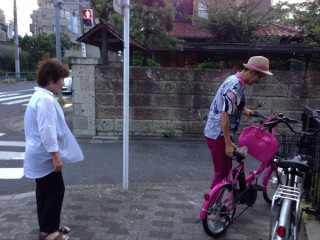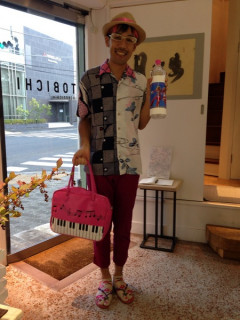 TOBIさんがやって来た! 昨日の夕方ごろ、ピンクを効かせた素敵なおめしもので 「TOBICHI」へいらしたのはこちら! パリで名高いパフォーマンスデュオ レ・ロマネスクのTOBIさんです。 ご来場ありがとうございます! 「なんだか、わたくしこちらのオープンを聞いて他人ごととは思えずに参りました!」とTOBIさん。 「『TOBICHI』の「CHI」を手で隠してみて!」とリクエストなさって一言。 「ほぼ日のTOBI…? まるで、じぶんが呼ばれたのかと思いました。」 TOBIというお名前を長年名乗っていらっしゃる彼としては 「TOBICHI」の存在が他人とは思えないようです(笑)。 お互い、似た名前の私たち。 これからもどうぞよろしくお願いします〜! TOBIさんから 「TOBICHI」へのオープンお祝いはパリ発、ピンクのキャップが目印のミネラルウォーター「コントレックス」。 MIYAさんとふたりでからだをはって 「祝」の文字を表現してくださったのし付きです。 TOBIさんのトークをずっと聞いていらっしゃった、福森雅武さんの奥さん、暉子さんはすっかりTOBIさんのトリコに。 「わたし、たのしい人、大好き!」 颯爽と去っていくTOBIさんを拍手しながら、にこにこ見送るおかあさんでした。 TOBIさん、またいつでもいらしてくださいね。 ありがとうございました! 2014/08/08 15:30 |