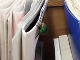 カナブン そんな占いができそうなごつい虫眼鏡を、いったい何用に机のいちばんうえの引き出しにしまっているのでしょうか。 「はっはぁー」 カナブンを凝視して感心するハリーです。 「それ、なんですか?」 カナブンです。 イサワさん、持って帰ります? 「要りません。 ぼくの食糧じゃないですから」 (※食糧じゃないですから、は イサワの持ちネタです) 「ほっほぉー。 虫眼鏡で見ると、おもしろい!」 忙しいのに、星野までハリーに虫眼鏡を借りてカナブンを観察しています。 「あー、金曜だ。 お先に失礼しまーす。 あ、なにやってんですか?」 ベイちゃんまで、虫眼鏡を手に。 「ああああ、すごい。 虫眼鏡って、あるとたのしいですね!」 「でしょう?!」 こんな、休み前の 「ほぼ日」であります。 2014/08/08 19:56 |