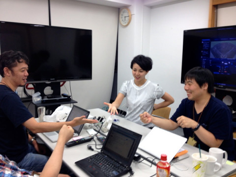 いかいか(1) 今日のオノマトペイントは夏バテ気味のイカがお題です。 そのイカを見ていて、イカの足って10本だったっけ? と思って調べちゃったよ、とびっくり顔に定評のある 「わたしの地元、 群馬県利根郡のとある村では 『たこたこ』と『いかいか』という 手遊びがあって、 『たこたこ』はともかく 『いかいか』は両手の10本の指を 使う遊びだったので、 いか=10というイメージです」 ほう、なんだその遊びは。 ぜひやってみようじゃないか! 同じくオノマトペイントチームの宇宙部 (宇宙部とは、 ほぼ日のシステム部のことです) 宇宙部は今、根をつめてあるシステムをつくっている最中で、1つの会議室に陣取って合宿中です。 今どんな感じかなぁ、とのぞいてみると、にこやかながらも集中しているようす。 声をかけようかかけまいか悩んで、そのままジーと見ていたら、 「なんやきみら、こわっ!!」 あちらからは、星野とわたしの 光る目玉が見えていたことでしょう‥‥。 「で、なにようかな? ぼくたちは見てのとおり、合宿中なんだよ。 ひやかしなら帰った、帰った!」 ひやかしじゃないですよー。 昨日、 (写真2枚目) 「(頭を抱えながら) ああー、なんでそのことを 知っているんだー!」 ふふふ、社内の情報はつつ抜けですよ‥‥。 悶絶するほどのことがあったとは知りつつ、ここでひと休みしてゲームをしませんか。 宇宙部のみなさんは、 「いかいか」ってご存知ですか? 「しらないなぁ」 星野さん、説明をプリーズ! 「『いかいか』とは、 まず手をグーにします。 そして、『いかいか、5』などと いいながら、 適当な本数の指をたてます。 自分がいった数字と、 その場にたっている指の数が 合致していたら、片方の腕を下ろします。 どちらの腕も下ろした人が、あがりです」 あれ、その親指バージョンなら知っていますよ。 「いっせーのーで、2!」とかいうやつでしょ? 「そうそう、 それの指10本バージョンです。 せっかくなので、 宇宙部のみなさん、やってみましょう。 じゃんけんに勝った人から 右回りですからね! はいっ! 最初はグー、じゃんけんぽーーん! あいこでしょーーー!」 じゃんけんの結果、 「いかいか」をすることになりました。 あれ? もしや、4人でやったら、1〜40までの数字を当てっこしなきゃならないってこと!? これ、あがりがでるのだろうか‥‥。 (長くてすみません。 つづきます) 2014/08/13 21:35 |