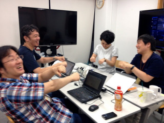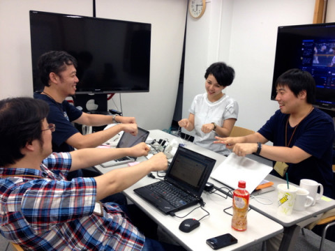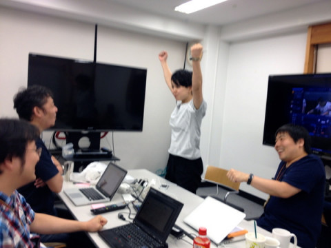 いかいか(2) さぁ、「いかいか」がはじまりました! じゃんけんで勝った 「いかいか、5!」 ざんねん、9でした。 「いかいか、11!」 うわー、おしい! 12だ! おしかったりおしくなかったりして、スリルを感じつつ迎えた3周目。 「いかいか、3!」 う、うぉぉぉーー! 当たったー!! これ、当たるんだーー!! で、多田さんは腕をひとつ下げる、と。 ここからほかの3人は 「いかいか、6!」 「いかいか、10!」 「いかいか、いか!」 ??? 「いかいか、いか」? 「あ、すみません、 いかいかでは、ゼロのときは 『いかいか、いか!』といいます」 へぇー。 じゃぁ、そのルールに則って、サクサク進めましょう。 「いかいか、5!」 「いかいか、13!」 「いかいか、16!」 うん、やっぱり星野は安定のびっくり顔だ。 (写真7枚目。 次に、当てた人がナンバー1です! これ、想像以上にもりあがります。 最大値「40」からどんどん数字の幅はちいさくなっているので、当たる確率としては高くなっていく。 それが、なんともエキサイティングなんです。 さぁさぁ、続きを! 「いかいか、18!」 「いかいか、2!」 「いかいか、9!」 うぉぉーーー! いちばん最初にあがったのは、 ユーアーナンバー1!! おお、勝者が自らポージング。 昨日の悶絶から一転、まさか自分が天に向かって人差し指を突き上げることになるとは思ってもなかったことでしょう。 さぁ、ゲームはまだ続きますよ! 次にあがってやろうと、残ったメンバーはますます気合いをいれて叫びます。 「いかいか、7!!」 「いかいか、15!!」 「いかいか、いか!!」 「いかいか、4!!!」 おおおお! 次にあがったのは、 「うわぁーーー! やったぁーーーーー!!」 ナンバー1の その興奮具合を冷静に、横目に見ていた 「ぼくらは協定を結んで、 もうここでやめない?」 えええーっ! 最後の最後で、なんと和解! ふたりはめでたく協定を結び、 「いかいか」はこれにて終了。 いやいや、思った以上にたのしかったですね。 そして、当たるものなのですねー。 テキストにすると長く感じますが、実際には5〜6分ほどの白熱した戦いでした。 みなさんも、機会がありましたら 「いかいか」をやってみてくださいー! これ、2人とかじゃなく、人数いるほうがたのしいと思います。 このゲームをするきっかけになった今日更新の 「早川乃梨子のオノマトペイント」も、ぜひ挑戦してみてくださいね。 ではでは、宇宙部のみなさん、お忙しいところすみませんでした、ありがとうございました! ‥‥。 あ、すごい、あんなに熱狂したのに、すっと作業に戻った。 2014/08/13 22:13 |