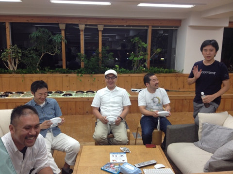 おじさんも興じる 先日は華やかだったテレビ前から、今日は低めの笑い声が聞こえます。 行ってみるとおじさんばかりでした。 おじさんたちもいよいよ明日に迫った 「勉強の夏、ゲームの夏」にむけてゲームの練習中。 ひとりちょっと若めの が、しかし明日になれば、ヤングチームである西田とアダルトチームは敵同士となり、賞品目指して戦うのだ! 賞品は「おいしい食べ物」というかなりざっくりとした情報しかないのですが、 カロリーメイツの私は、がぜん燃えています。 そして悲しいかなアダルトチームに組み込まれた私は、おじさんの練習をとても応援するのです。 おいしいものが食べたい! だからがんばります。 そもそも不利な予感のするアダルトチームの応援をみなさま、よろしくお願いします。 2014/08/20 21:30 |