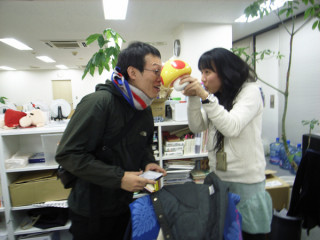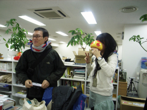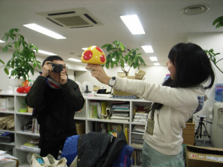 じゃ、記念に僕があげた、 この紙製のカメラで 記念撮影さ!」