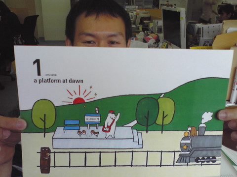 質問箱、海を越える。 ひとつおしらせです。 「谷川俊太郎質問箱」がことしの春、おとなりの国、韓国から、もうすぐ発売されることになりましたー。 今回、出版までご担当くださった丁さんとみんなで記念写真をパチリ。 完成した原稿をチェックしたぐっさんも 「ヘーーーー! ぜんぶ、ハングルだね!」と驚いてます。 あたりまえですが11ページの「谷川駅」もすべてハングルになってました。 韓国にお住まいの方いらっしゃいましたらぜひ本屋さんでお手に取ってみてくださいね。 発売日が決まったらまたお知らせいたしまーす! 2008/03/12 22:33 |