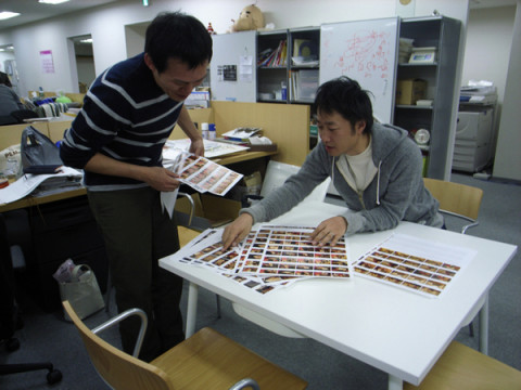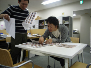 先日、取材にいった写真をチェック中の二人。