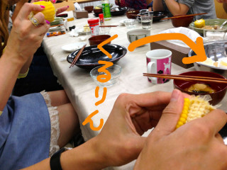 いわくろは、指で1列ずつくるりんとはがして粒を手で食べていたのです。