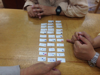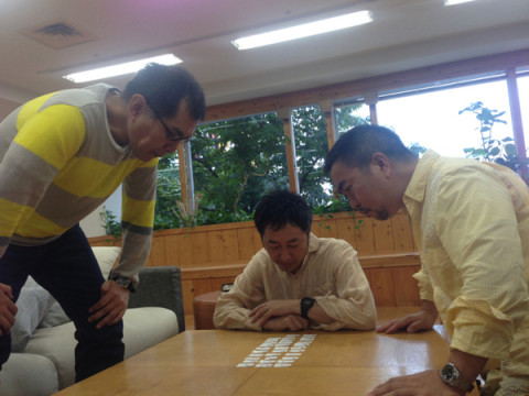 高低差。 毎日の日課、翌日の「ほぼ日」のホームのメニューの順番を決める相談をしていた。 通称・シャッフル。 今日は、私がプリントアウトのサイズを間違えて、いつもより小さめの紙片でシャッフルです。 ではここで。 【突然製作中クイーズ!】 ここに、 3人の姿勢がそれぞれに違うのは、明白な理由があります。 それは、なんでしょうか? 答えがわかった方は、postman@1101.comに、ぜひメールを。 今回のクイズは大変難しいです。 回答をいただいた方には、お返事で正解をメールいたします。 万が一正解の方がいらした場合は、 「ほぼ日グッズ詰め合わせ」をプレゼント! (正解者多数の場合は抽選で!)ちなみに、確実なヒントが文中にあります。 ---------出題者が相変わらず読みが甘く正解者がこの時点でどっさり。 回答の締め切りを本日(8/27) 14時30分とさせていただきますー。 すみませんー! 2014/08/27 12:55 |