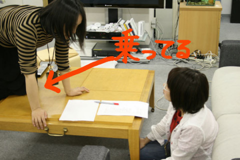 い‥‥いいけど、片膝を机に乗せてまで迫ってこなくても。