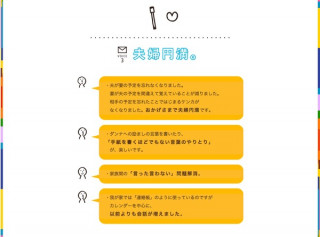 「夫婦円満ツール」? みなさん、こんにちは。 ホワイトボードカレンダーチームです。 ことしの1月に ほぼ日ホワイトボードカレンダーのアンケートを実施したんですが、これが、実におもしろかったんです。 たとえば 「ホワイトボードカレンダーの どんなところが気に入ってますか」 という質問に対して (会話が増えてケンカが減ったため) 「夫婦円満の役に立っている」 という答えが(少なくない数)来たり、 「夫が ものすごく上手にキン肉マンが描ける ということを知った」 という「発見」の報告があったり‥‥。 あらためて読んだら、お、おもしろい。 そこで、思いつきのように募集します。 「こんなふうに、べんりに使っています」 「こんな(変な?)ことをメモってます」 「このような発見がありました」 などなど、ホワイトボードカレンダーまわりのことならなんでもOK。 ぜひとも、メールで教えてください。 件名を「カレンダーの使いかた」としてcalendar@1101.comまで、お寄せいただけるとうれしいです。 写真は、あってもなくても大丈夫。 ぜひどうぞ、おきがるに。 「なるほどー」「おもしろーい!」 「その手があったか」 というおたよりはどんどんご紹介していきたいと思います。 2014/09/04 15:29 |