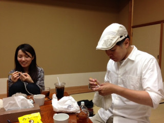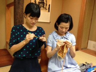 今日はわたしのおさななじみチー坊こと、李千鶴さんも編みに来てくれました。
