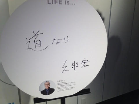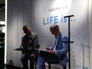 久米宏さんのLIFE is... 久米宏さんと糸井重里のトークショーは、久米さんの若いときのお話やテレビについてのお話、時事ネタ、仕事についてなどさまざまな話題がとびかう充実した一時間半となり、会場では何度も笑いも起きました。 いやはや、おもしろかったです。 また、トークの途中で書いていただいた久米さんの「LIFE is...」は 「道なり」。 こちらは一階のスペースで他のかたの「LIFE is」と一緒に展示いたします。 今日のトークの内容は、後日、ほぼ日上で読めるようにする予定ですのでよければチェックしてみてくださいね。 久米さん、糸井さん、お越しくださったみなさん、どうもありがとうございました! 2014/09/07 15:37 |