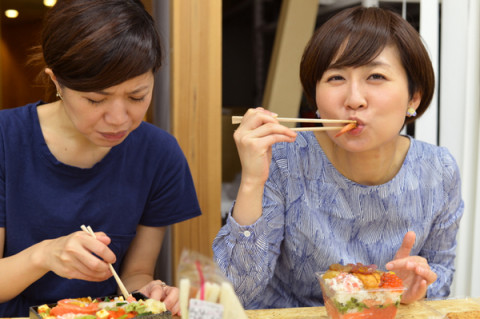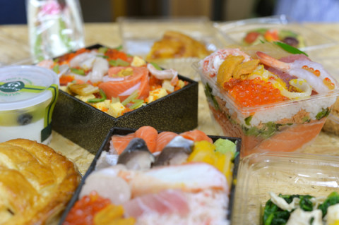 カロリーメイツはすしです 「ほぼ日」の食いしんぼう3人組 カロリーメイツ おなかがすきすぎていると、選ぶ頭がすっきり澄みわたらないのです。 3人そろって、落ち着いた心でお買いものしましたよ。 でも、そうとう、興奮しましたけれどもね!! お弁当を選んでいるあいだ、売り場で乗組員のみんなに会うと 「あ‥‥‥‥‥メイツだ」と遠巻きにされました。 結果、3人とも、メインはすしです。 宝石箱みたいな海鮮どんぶりでございます。 いろいろいろいろいろいろ入ってる、これがお弁当の醍醐味でありましょう。 あとは、チョコレートケーキやアップルパイをホールで買いました。 最後にあれが待っている、と思う。 それはもう、永遠のしあわせが約束されているようなものです。 選んで買うのがたのしい、自分の選んだメニューの自慢をするのがたのしい、そして最後に、食べるたのしみもある。 イべんとう、おすすめです。 2014/09/10 13:50 |