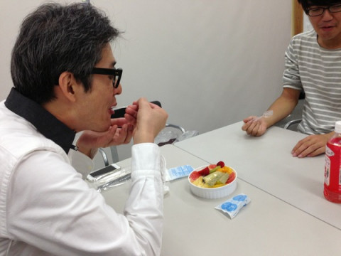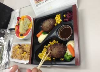 ダブルハンバーグ 本日の「イべんとう」、みんなに注目を浴びていた ハンバーグ弁当、しかもダブル! 全くおなじものが2つ並んでいます。 「こんなにおいしいとはおもってなかった」 と言って満喫していました。 白米のかわりには炊き込み御飯。 さらに、デザートも特大サイズ! 見る人見る人が 「やっぱり、ただものではない」 と言っています。 そして、何よりすごいのはこれだけのものを飲みものを一切飲まずに完食していたこと。 やっぱり、ただものではない‥‥。 2014/09/10 14:08 |