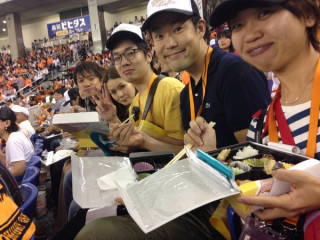 乗組員も席について、斎吉さんプロデュースのお弁当をいただきながら、応援しまーす。