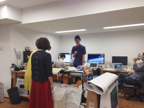 その担当デザイナーであるプリグラフィックスの吉田さんと清水さんが事務所にいらしたので、このページのファンと言ってくれている弊社の