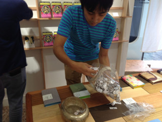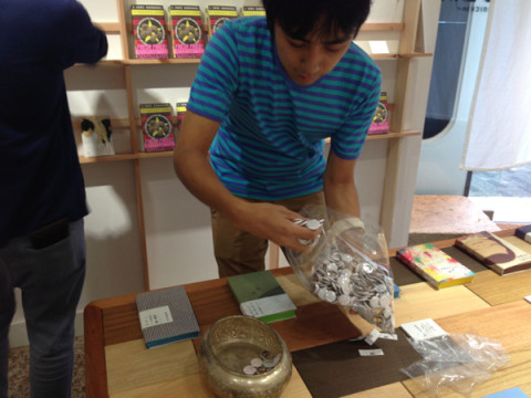 予定通り。 今朝は東京もすごい風雨でしたが、現在すっかり雨もあがりまして、青空が見えます。 台風ファミリーそれは台風一家、ではなくて、台風一過のさわやかさ。 もちろん、今日からTOBICHIでオープンする 「小さいことば堂」、予定通りです! 今回、ご来店いただいて、本を1冊お買い上げにつき、糸井重里の言葉入りのちいさなバッチをプレゼントするのですが、さきほど、バッチがとどきました〜。 銀色の入れものとあいまって、財宝感があります。 このあと、さまざまな制作物をもってプリグラフィックスの清水さんたちがこちらに来られるはず‥‥。 オープンまでもうすこしで〜す! 2014/10/06 16:21 |