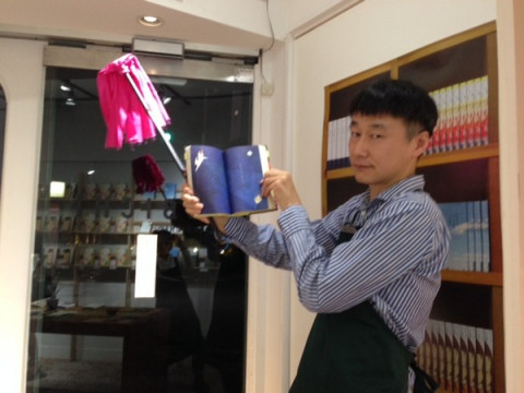 「小さいことば堂」、ただいまのハタキ係はイラストレーターの福田利之さんです。