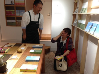 「えっ! いまですか!?」 こちら 「小さいことば堂」です。 さきほどお伝えしましたようにいつもよりずっと早く、著者、糸井重里が来店し、即席のサイン会が行われました。 そして、糸井が去ってわずか2分後! 来店したお客さんがその事実を知って‥‥。 「えっ、いま、帰っちゃったんですか!」 がっくりと膝をつくお客様。 あまりにその姿がおかしかったので 「写真を撮るのでそのままいてください」 とお願いしたら、頼むまでもなく、そのまましばし放心状態。 駆け寄り、思わず励ますはたき担当の いや、でも、たぶん、また来たりしますよ? わかんないけど? 「‥‥はい、じゃあ、ちょっと、 立ち読みして待ってみようかな」 いやあ、あんなに見事に膝から崩れ落ちる人、はじめて見たわ。 マンガかと思った。 2014/10/09 19:01 |
