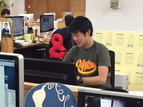カロリーメイツの 今日は経理の そう、カロリーメイツのTシャツです。 Tシャツを作るとき、とうじはまったくカロリーメイツじゃないのにいっしょに「乗って」くれたおやさしい方のひとりなのです。 ほら、頭数で割ると、Tシャツ代が安くなりますから。 そして、これこのように出勤時に着用してくれるなんて感激です。 「社内より社外で着るほうが 気が楽っすね」 と言っていました。 えー。 そんなこと言わずにどんどん着てきてよ。 ちなみにこのTシャツをデザインしたのは あたまがどんどんもじゃ化しています。 2014/10/15 20:09 |