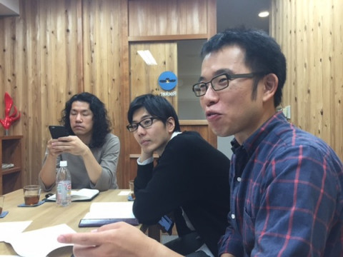 コズフィッシュの祖父江さん、柴田さんと我々は、宇宙的(技術的)なミーティングをしています。