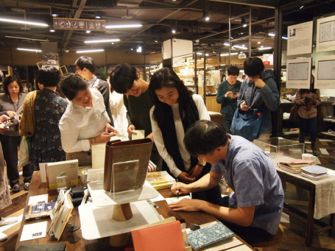 ついに完成! 台湾で行われている福田さんのマスキングテープ作品、開始から2時間半で、ついに完成しました! 「1冊の本から出ているのは 『知の泉』。そこから知性を得た人が またそれを本という形にしていって‥‥ そういうサイクルのようなものを表しました」 ‥‥画伯、すごい! たくさんの本を扱う誠品書店さんにふさわしい作品です。 お客さまからも大きな拍手がおこっています。 スタッフとして見ている私達も、ものすごく感動しました。 ただいま、たくさんのお客さまが福田さんにサインをお願いしています。 福田さんの台湾イベント、本日はこれにて終了です! 明日は マスキングテープを使ってほぼ日手帳をカスタマイズするワークショップ を行います! 明日も引き続き、こちらの Facebookページで紹介していきますね。 2014/11/04 20:38 |